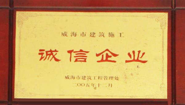 公司連續(xù)八年榮獲威海市“誠(chéng)信開發(fā)企業(yè)”、“建筑施工誠(chéng)信企業(yè)”,連續(xù)九年被評(píng)為威海市級(jí)“守合同重信用企業(yè)”,多次被評(píng)為威海市“市級(jí)文明單位”、“質(zhì)量管理先進(jìn)企業(yè)”、 “安全管理先進(jìn)企業(yè)”,乳山市“優(yōu)秀企業(yè)”、“先進(jìn)民營(yíng)企業(yè)”、“納稅明星企業(yè)”,在社會(huì)上逐步樹立了誠(chéng)信、穩(wěn)健的企業(yè)形象。